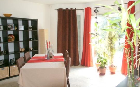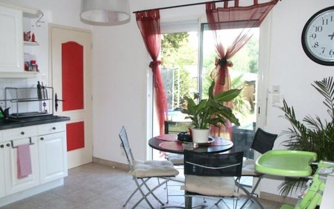 MAISON de 2002 d'environ 135 m² habitables sur TERRAIN paysager de 622 m² comprenant ENTREE (penderie), SEJOUR-SALON traversant (avec cheminée insert) donnant sur JARDIN, CUISINE indépendante meublée et équipée, cellier,