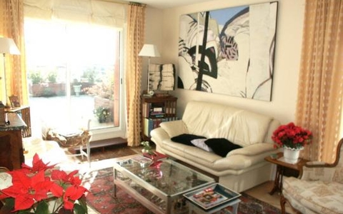 APPARTEMENT de 112,84 m² (carrez) comprenant ENTREE avec placard et penderie, SEJOUR-SALON de 56 m² (cheminée centrale) donnant sur TERRASSE d'ANGLE exposée sud et ouest, CUISINE indépendante meublée et équipée donnant également sur TERRASSE, CHAMBRE PARENTALE avec dressing, salle de bains privative (baignoire et cabine de douche) et wc, 2ème CHAMBRE avec salle d'eau privative, 2ème wc ind. avec lave-mains.