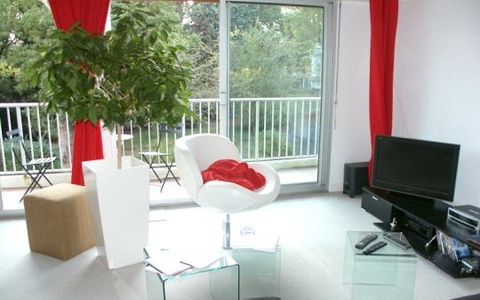 APPARTEMENT 3 PIECES de 85,22 m² (Carrez) entièrement restauré (prestations et décoration soignées) au 1er étage avec ascenseur : ENTREE et dégagement avec 2 placards, grand SEJOUR-SALON et CUISINE ouverte (meublée et très bien équipée avec BAR) donnant sur TERRASSE avec VUE sur JARDIN, 2 grandes CHAMBRES (avec placard), SALLE d'EAU (cabine de douche et espace lingerie), wc ind.